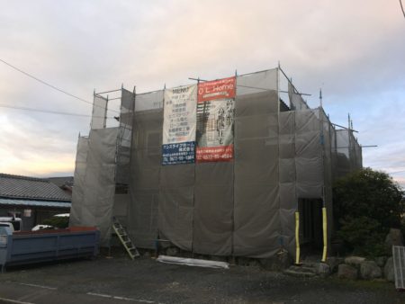 先日防水工事が完了したS様邸。本日、足場がかかりました。