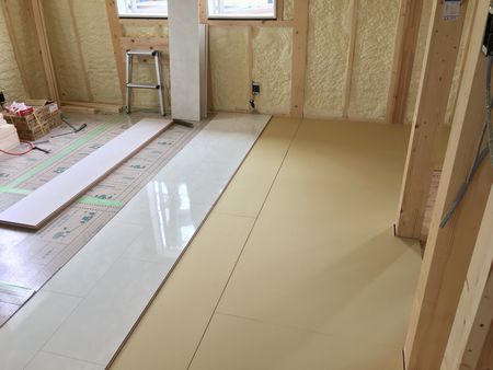 プラスターボードを一枚敷くことで、下の階への音が軽減されます。