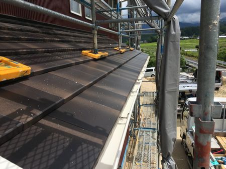 本日は屋外の器具付けや樋の取り付けを行い足場撤去を迎えます。