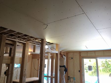 2階の振動などがなるべく1階に伝わらないようにするために、1階天井下地には防震吊り木という部材を使っております。