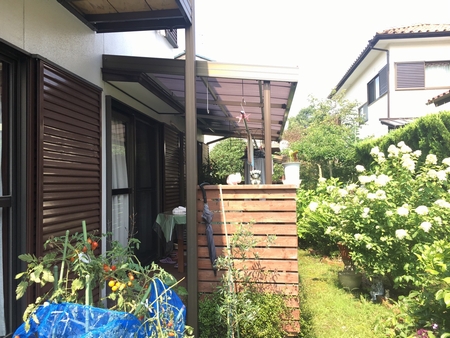 もともとは波板のテラス屋根が取り付けられておりましたが、屋根材が傷んできており、