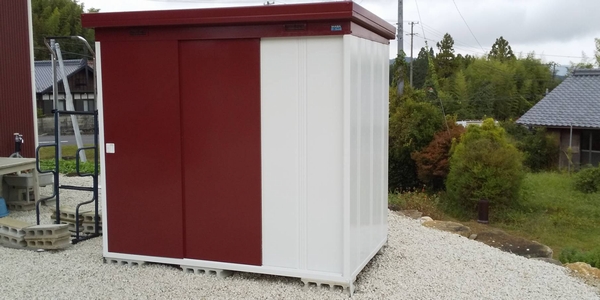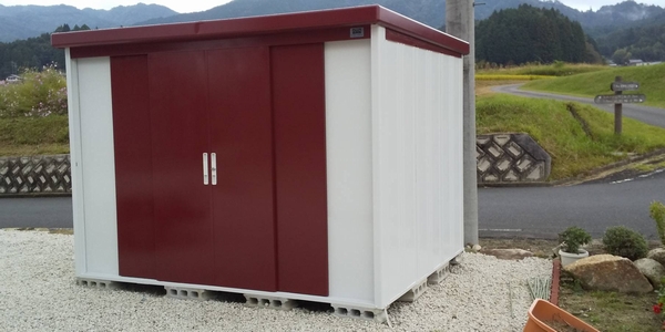 知人から譲ってもらった物置をアクセント色を使って、ちょっぴり違った雰囲気の物置にしたいとご依頼いただきました。